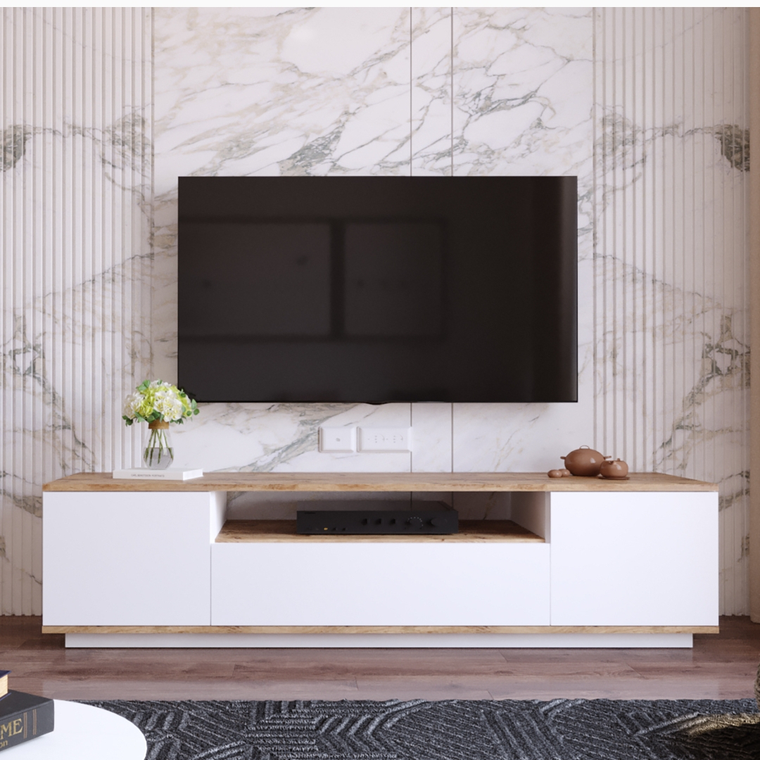 گروه صنعتی آراسک با برند تولید شدیه آراسک جنس این محصول از ام دی اف درجه 1 می باشد که کاملا ضد خش است و از نوار x2میل xPVC برای لبه های میز tv استفاده شده.
