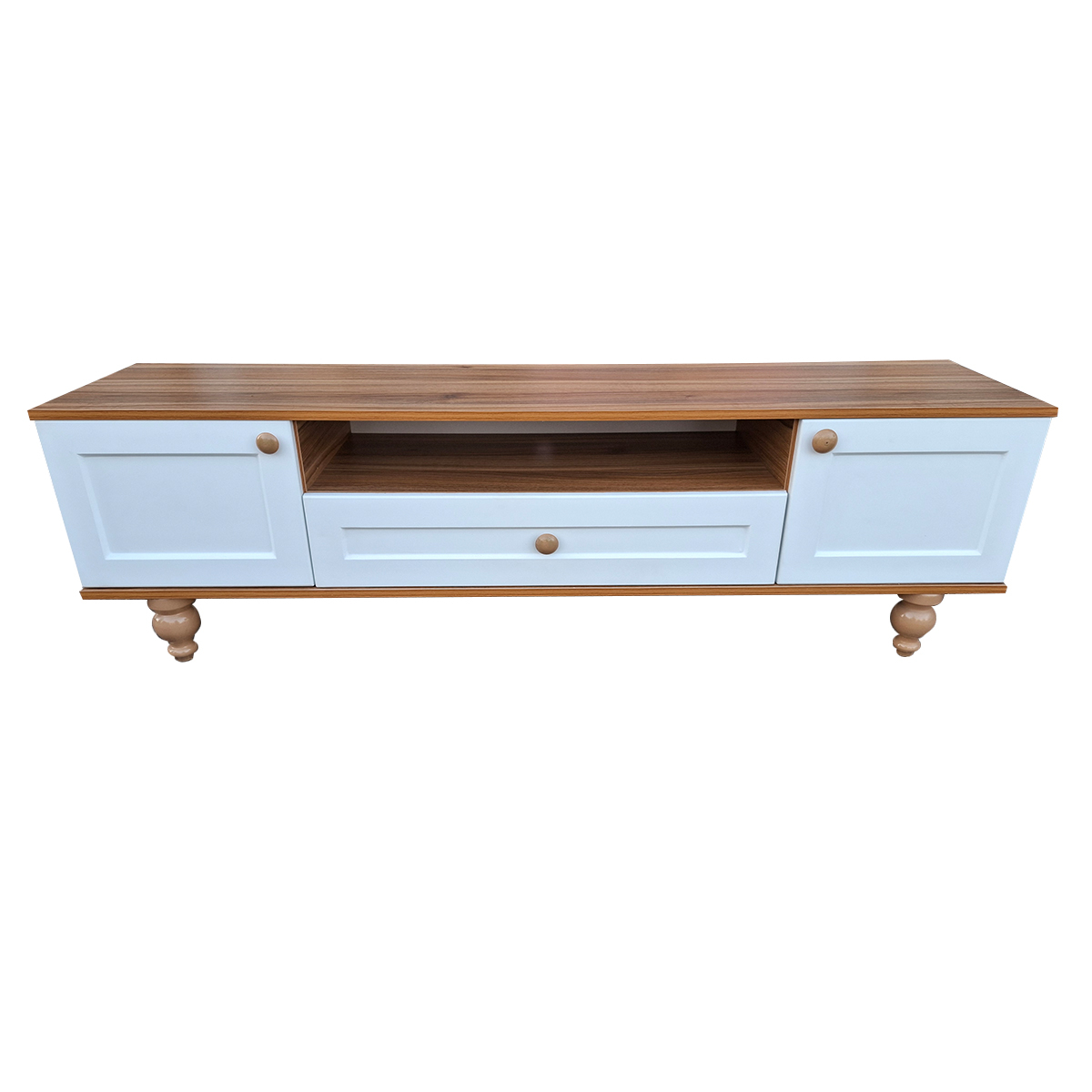 ترکیب رنگ سفید دربها با سطحی به طرح چوب طبیعی باعث شده جلوهای گرم و دلنشین به فضای نشیمن بدهد آریانا به راحتی با هر سبک دکوراسیونی هماهنگ میشود و علاوه بر ظاهر زیبا بسیار جادار است و فضای بسیار مناسبی در اختیار شما قرار میدهد تا مشکل شلوغی اطراف تلویزیون به بهترین شکل برطرف شود.