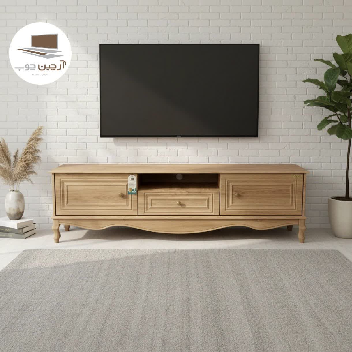 فضای ذخیرهسازی: با کشوها و قفسههای باز، فضای کافی برای نگهداری وسایل صوتی و تصویری فراهم میکند.